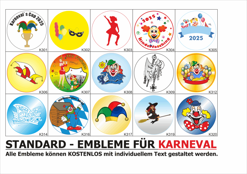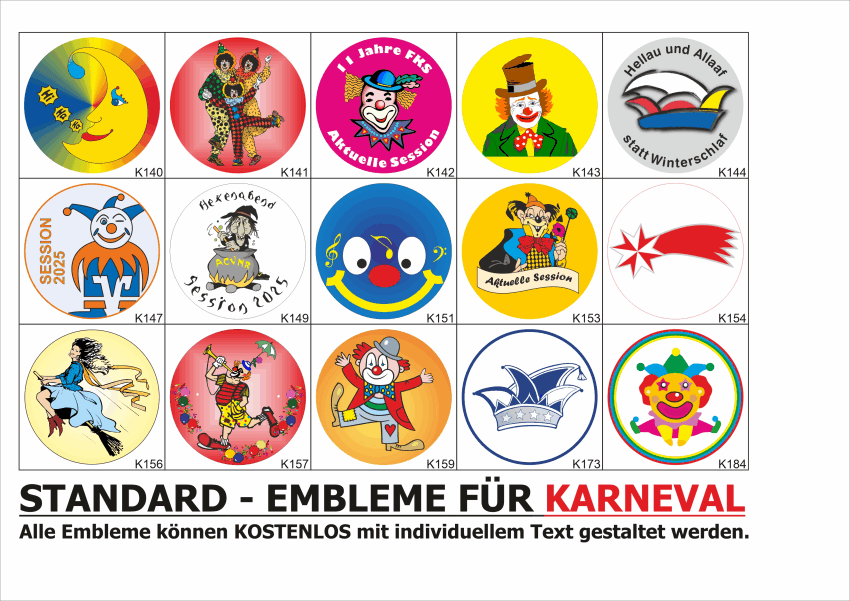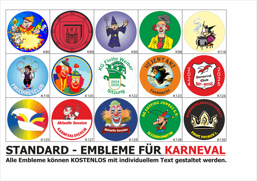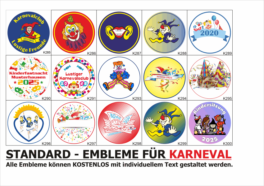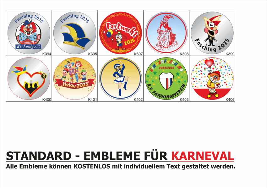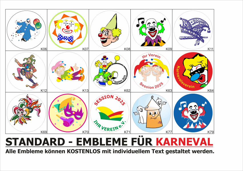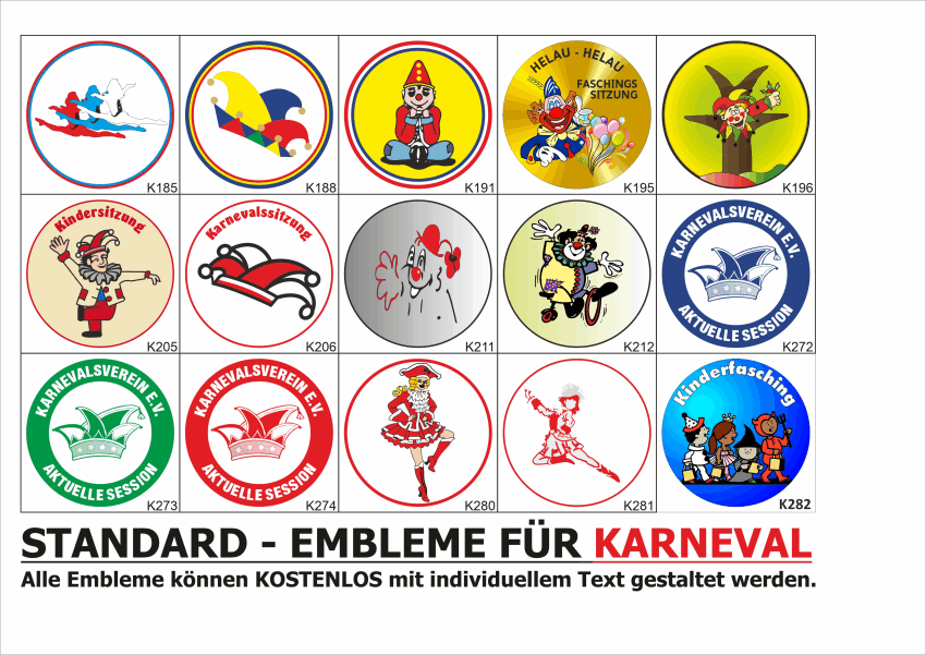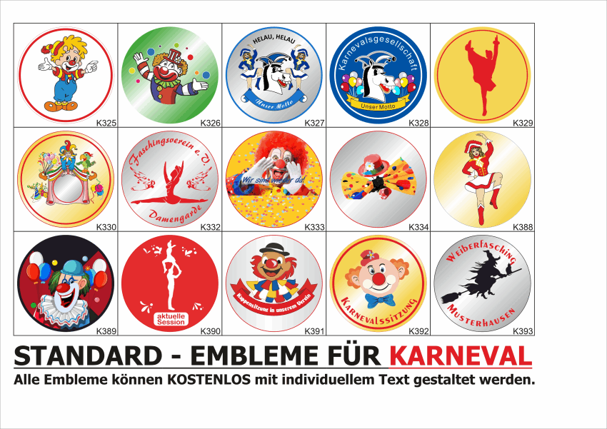 Es gibt viele Möglichkeiten ein Emblem zu gestalten. Hier finden sie eine Übersicht unserer KARNEVAL