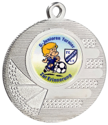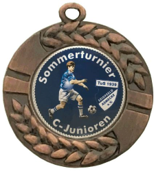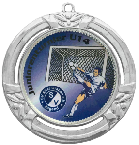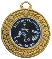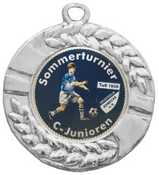 Vereins-, Firmen- oder Veranstaltungslogo bzw. mit einem Foto und individuellen Text gestalten. Alternativ können Sie auch ein Standard-Emblem (hier eine Übersicht unserer Standard-Embleme) auswählen und mit einem eigenen Text rundum beschriften lassen. Alle hier abgebildeten Embleme sind nur Beispiele ! Alle Medaillen sind immer fertig montiert und